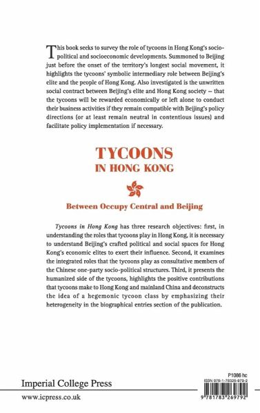 This book seeks to survey the role of tycoons in Hong Kong's socio-political and socioeconomic developments. Summoned to Beijing just before the onset of the territory's longest social movement, it highlights the tycoons' symbolic intermediary role between Beijing's elite and the people of Hong Kong. Also investigated is the unwritten social contract between Beijing's elite and Hong Kong society ¿ that the tycoons will be rewarded economically or left alone to conduct their business activities if they remain compatible with Beijing's policy directions (or at least remain neutral in contentious issues) and facilitate policy implementation if necessary.Tycoons in Hong Kong has three research objectives: first, in understanding the roles that tycoons play in Hong Kong, it is necessary to understand Beijing's crafted political and social spaces for Hong Kong's economic elites to exert their influence. Second, it examines the integrated roles that the tycoons play as consultative members of the Chinese one-party socio-political structures. Third, it presents the humanized side of the tycoons, highlights the positive contributions that tycoons make to Hong Kong and mainland China and deconstructs the idea of a hegemonic tycoon class by emphasizing their heterogeneity in the biographical entries section of the publication.