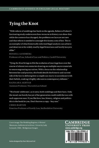 Tying the Knot is for anyone interested in how couples have married from 1836 to the present day. It shows how the legal options have evolved and how social practices have changed, and demonstrates how the legal regulations have hindered many couples from marrying in accordance with their beliefs.