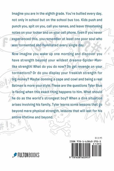 Imagine you are in the eighth grade. You're bullied every day, not only in school but on the school bus too. Kids push and punch you, spit on you, call you names, and leave threatening notes on your locker and on your cell phone. Even if you never experienced this, you remember at least one poor soul who was tormented and humiliated every single day. Now imagine you wake up one morning and discover you have strength beyond your wildest dreams--Spider-Man-like strength! What do you do now? Do get revenge on your tormentors? Or do you display your freakish strength for big money? Maybe donning a cape and cowl and being a real Batman is more your style. These are the questions Tyler Blue is facing when this exact thing happens to him. What should he do as the world's strongest boy? When a dire situation arises involving his family, Tyler learns some lessons that go beyond mere physical strength, lessons that will last for his entire lifetime and beyond.