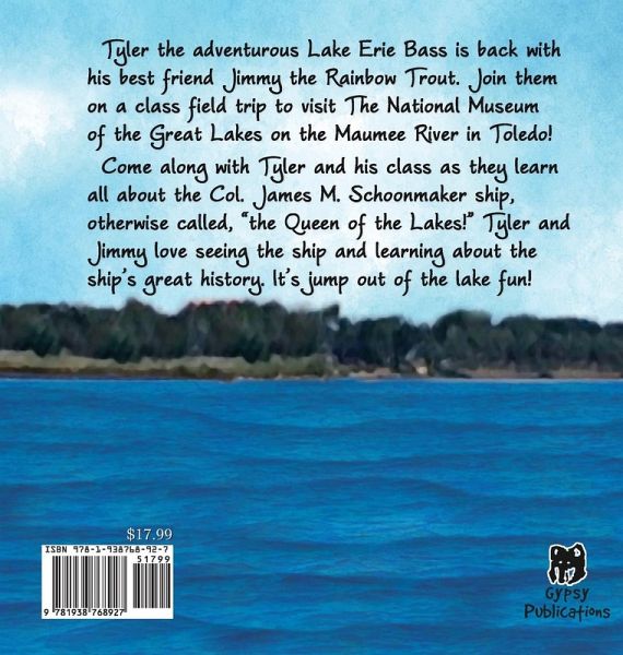 Tyler the adventurous Lake Erie Bass is back with his best friend Jimmy the Rainbow Trout. Join them on a class field trip to visit The National Museum of the Great Lakes on the Maumee River in Toledo! Come along with Tyler and his class as they learn all about the Col. James M. Schoonmaker ship, otherwise called, "the Queen of the Lakes!" Tyler and Jimmy love seeing the ship and learning about the ship's great history. It's jump out of the lake fun!