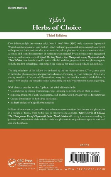 Does Echinacea fight the common cold? Does St. John's Wort (SJW) really counteract depression? What about chondroitin for joint health? Today's healthcare professionals are increasingly confronted with questions from patients who want to use herbal supplements to treat various conditions. A critical and scientific assessment of medicinal plant research by an internationally recognized researcher and writer in the field, Tyler's Herbs of Choice: The Therapeutic Use of Phytomedicinals, Third Edition combines the scientific aspects of herbal medicine, phytomedicine, and pharmacognosy with the modern clinical trials that support the rationale for using plant products in healthcare. A Decade's Worth of Updates The original edition of this volume was authored by the late Professor Varro E. Tyler, a true giant in the field of pharmacognosy and pharmacy education. Following in Tyler's footsteps, Dennis V.C. Awang, co-editor of the journal Phytomedicine, recognized the need for a revised third edition, in light of how quickly the clinical literature surrounding the dietary supplement market is growing. Millions of consumers are demanding natural treatment options from their doctors and pharmacies in a variety of forms, from herbal teas to tinctures and capsules. Tyler's Herbs of Choice: The Therapeutic Use of Phytomedicinals, Third Edition effectively fosters understanding in patients and practitioners of the role that herbs and phytomedicinal products can play in both self-care and healthcare.