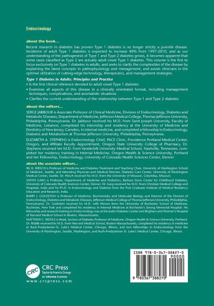 Recent research in diabetes has proven Type 1 diabetes is no longer a purely a juvenile disease. It has been projected adult Type 1 diabetes will increase 40% from 1997-2010, and as our understanding of the pathogeneisis of Type 1 and Type 2 diabetes grows - it is apparent that some cases previously classified as Type 2 are actually adult onset Type 1 diabetes. This volume is the first to focus exclusively on Type 1 diabetes in adults, seeks to clarify the complexities by explaining latest concepts in the pathophysiology and management of the disease, and to assist clinicians in the optimal utilization of cutting edge technology, therapeutics, and management strategies available to them.