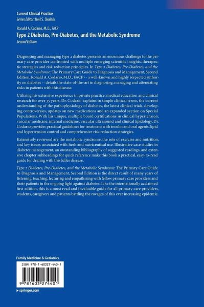 Type 2 Diabetes, Pre-Diabetes, and the Metabolic Syndrome: The Primary Care Guide to Diagnosis and Management, Second Edition is the direct result of many years of listening, teaching, lecturing and empathizing with fellow primary care providers and their patients in the ongoing fight against diabetes. Like the internationally acclaimed first edition, this is a must read and invaluable guide for all primary care providers, students, caregivers and patients battling the ravages of this ever increasing epidemic.