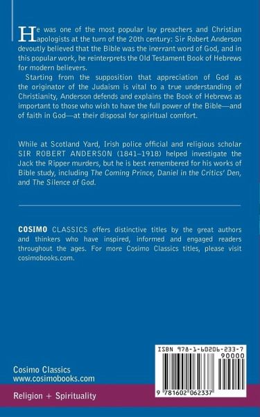 He was one of the most popular lay preachers and Christian apologists at the turn of the 20th century: Sir Robert Anderson devoutly believed that the Bible was the inerrant word of God, and in this popular work, he reinterprets the Old Testament Book of Hebrews for modern believers. Starting from the supposition that appreciation of God as the originator of the Judaism is vital to a true understanding of Christianity, Anderson defends and explains the Book of Hebrews as important to those who wish to have the full power of the Bible-and of faith in God-at their disposal for spiritual comfort. While at Scotland Yard, Irish police official and religious scholar SIR ROBERT ANDERSON (1841-1918) helped investigate the Jack the Ripper murders, but he is best remembered for his works of Bible study, including The Coming Prince, Daniel in the Critics' Den, and The Silence of God.