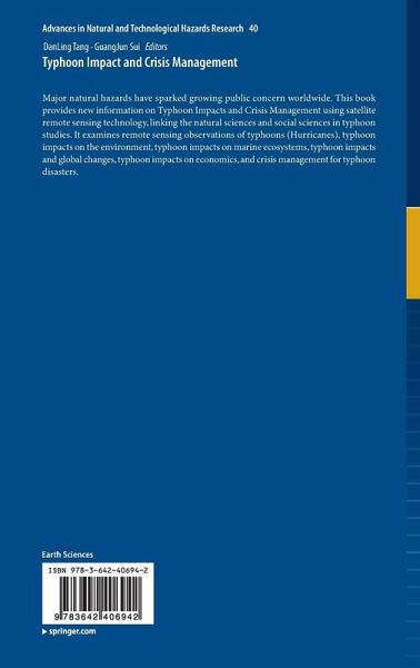 Major natural hazards have sparked growing public concern worldwide. This book provides new information on Typhoon Impact and Crisis Management using satellite remote sensing technology, linking the natural sciences and social sciences in typhoon studies. It examines remote sensing observations of typhoons (hurricanes), typhoon impacts on the environment, typhoon impacts on marine ecosystems, typhoon impacts and global changes, typhoon (hurricane) impacts on economics, and crisis management for typhoon (hurricane) disasters.