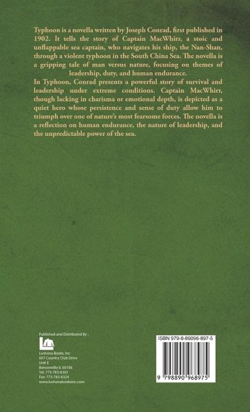 Typhoon is a novella written by Joseph Conrad, first published in 1902. It tells the story of Captain MacWhirr, a stoic and unflappable sea captain, who navigates his ship, the Nan-Shan, through a violent typhoon in the South China Sea. The novella is a gripping tale of man versus nature, focusing on themes of leadership, duty, and human endurance. In Typhoon, Conrad presents a powerful story of survival and leadership under extreme conditions. Captain MacWhirr, though lacking in charisma or emotional depth, is depicted as a quiet hero whose persistence and sense of duty allow him to triumph over one of nature's most fearsome forces. The novella is a reflection on human endurance, the nature of leadership, and the unpredictable power of the sea.
