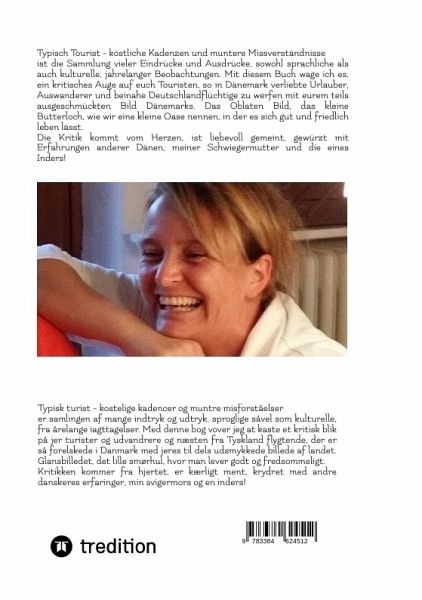 Typisch Tourist! - köstliche Kadenzen und muntere Missverständnisseist die Sammlung vieler Eindrücke und Ausdrücke, sowohl sprachliche als auch kulturelle, jahrelanger Beobachtungen, bei denen viele muntere Missverständnisse entstanden sind und immer noch entstehen. Das passiert bei meinen Begegnungen mit Deutschen, von denen beachtlich viele von euch, sich in meine kleine Muttersprache und in die dänische Kultur hineingewagt.Das verrät mir meine volle Kurswoche. Ich wiederrum, wage es mit diesem Buch, ein kritisches Auge auf euch Touristen, so in Dänemark verliebten Urlauber, Auswanderer und beinahe Deutschlandflüchtige zu werfen mit eurem teils ausgeschmückten Bild Dänemarks. Das Oblaten Bild, das kleine Butterloch, wie wir eine kleine Oase nennen, in der es sich gut und friedlich leben lässt. Die Kritik kommt vom Herzen, ist liebevoll gemeint, gewürzt mit Erfahrungen anderer Dänen, meiner Schwiegermutter und die eines Inders!