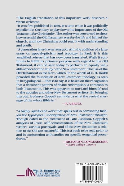 This is a print on demand book and is therefore non- returnable. In 1938-39 Leonhard Goppelt finished his doctoral dissertation at Erlangen entitled "Typos: Die typologische Deutung des Alten Testaments im Neuen." The lasting value of his work was evidenced in 1969 when this dissertation was reprinted, with an appendix on "Apocalypticism and Typology in Paul." Goppelt's work has maintained its significance because it deals with biblical hermeneutics — the study of the methodology of biblical interpretation — a subject of renewed interest in the last few years. In his search for a normative hermeneutics, Goppelt appeals to the New Testament's interpretation of the Old Testament as a guide. He offers "a study of the interpretation of Scripture that is characteristic of the New Testament" in order to provide a standard guide for interpreting the Bible today. The focal question for Goppelt is how the Old Testament and Jesus Christ are related, and Goppelt's answer to this question is found in how the New Testament interprets the Old Testament — typologically. Goppelt begins with a brief survey of the various definitions of typology to determine how it is distinguished from allegory, with which it is often confused. After this introductory chapter, Goppelt divides his work into three parts: Typology in Late Judaism, Typology in the New Testament, and Apocalypticism and Typology in Paul. In his survey of late Judaism, Goppelt examines both Palestinian and Hellenistic Judaism to determine the place of typology in their literatures. Turning to the New Testament, Goppelt looks first at the portrayal of Jesus Christ in the Synoptic Gospels and Acts. Elements of this portrayal are Jesus as the Prophet, as the Son of David and Lord, and as the Son of Man. Goppelt finds each of these characterizations typologically related to the Old Testament. Similarly, in his next chapter on the church as portrayed in the Synoptics and Acts, Goppelt finds a number of typological relationships between the people of God in the Old Testament and the church in the New Testament. Goppelt next examines the Pauline epistles for Paul's use of Scripture in general and for his view of Christ and the church. Goppelt here appends brief treatments on 1 and 2 Peter and Jude. In following chapters Goppelt deals with Hebrews, the Gospel of John, and finally apocalypticism and typology in Paul. Here he also examines traditional approaches to the relationship between the Old Testament and the New, the origin and legitimacy of the typological approach, and the relationship between typology and the historical-critical method.