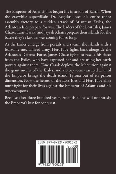 The Emperor of Atlantis has begun his invasion of Earth. When the erstwhile supervillain Dr. Regulus loses his entire robot assembly factory to a sudden attack of Atlantean Exiles, the Atlantean Isles prepare for war. The leaders of the Lost Isles, James Chase, Tane Casak, and Jayesh Khatri prepare their islands for the battle they've known was coming for so long. As the Exiles emerge from portals and swarm the islands with a fearsome mechanized army, HeroTube fights back alongside the Atlantean Defense Force. James Chase fights to rescue his sister from the Exiles, who have captured her and are using her earth powers against them. Tane Casak deploys the Mercurion against the giant mecha of the Exiles, and victory seems assured ... until the Emperor brings the death island Tyrona out of its prison dimension. Now the heroes of the Lost Isles and HeroTube alike must fight for their lives against the Emperor of Atlantis and his superweapons. Because after three hundred years, Atlantis alone will not satisfy the Emperor's lust for conquest.