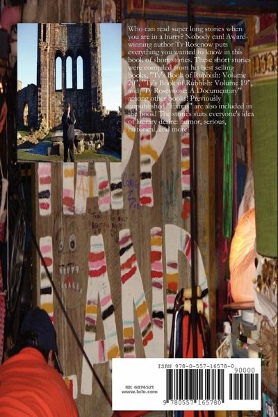 Who can read super long stories when you are in a hurry? Nobody can! Award-winning author Ty Rosenow puts everything you wanted to know in this book of short stories. These short stories were compiled from his best selling books, "Ty's Book of Rubbish: Volume 20", "Ty's Book of Rubbish: Volume 19", and "Ty Roseynose: A Documentary" among other books! Previously unpublished "Extras" are also included in the book! The stories suits everyone's idea of literary desire: humor, serious, historical, and more!
