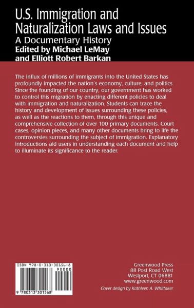The influx of millions of immigrants into the United States has profoundly impacted the nation's economy, culture, and politics. Since the founding of our country, our government has worked to control this migration by enacting different policies to deal with immigration and naturalization. Students can trace the history and development of issues surrounding these policies, as well as the reactions to them, through this unique and comprehensive collection of over 100 primary documents. Court cases, opinion pieces, and many other documents bring to life the controversies surrounding the subject of immigration. Explanatory introductions aid users in understanding each document and help to illuminate its significance to the reader. The major laws on immigration and naturalization are included in this useful volume, and have been edited to include the principal provisions in each, thereby making them more accessible to students without compromising their quality and accuracy. These key primary documents are arranged chronologically to help the user discover what has and has not changed over the centuries. The introductory and explanatory texts help readers understand the issues being litigated, the social and cultural pressures that shaped each deate, and the ways in which biases of individual Justices and Presidents affected immigration and naturalization laws in this country.