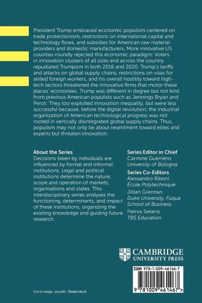 This Element shows President Trump's economic populism, trade protectionism, restrictions on capital and technology, and subsidies, were rejected by innovative US counties. Trump's tariffs, attacks on global supply chains, and hostility toward high-tech sectors threatened innovative firms. This populism resents elites and threatens innovation.