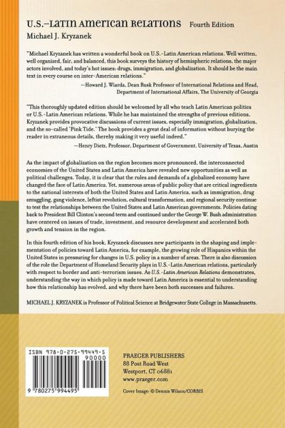 Since the third edition was published in 1996, there have been significant developments in this key strategic and economic relationship. Kryzanek builds on the text and themes of previous editions and further examines the ties between the United States and the nations of Latin America. These ties reveal new opportunities, challenges, and tensions. During the second term of President Bill Clinton and now in the Bush presidency, hemispheric relations have been centered on issues of trade, investment, and resource development. The impact of globalization on the region was only beginning to be felt when the third edition of the text went to print, but now it is clear that the rules and demands of a globalized economy have changed the face of Latin America. Numerous areas of public policy that are critical ingredients to the national interests of both the United States and Latin America, such as immigration, drug smuggling, gang violence, leftist revolution, cultural transformations, and regional security continue to test the relationships between the United States and Latin American governments. Because this text has in the past concentrated on the foreign policy process within the United States government, the proposed new edition will not only update this process but add discussion of new participants in the shaping and implementation of policies toward Latin America. For example, there will be an accent on the growing role of Hispanics within the United States in pressuring for changes in United States policy in a number of areas. Institutionally, there will be new discussion of the role that the Department of Homeland Security plays in United States-Latin American relations, particularly with respect to border and anti-terrorism issues. Key chapters will be reformulated in order to show how the United States makes policy toward Latin America and how the Latin Americans respond to policy initiatives. Presenting how policy is made toward the region is an essential pathway toward understanding how this relationship has evolved and why there have been both successes and failures between the United States and the countries of Latin America.