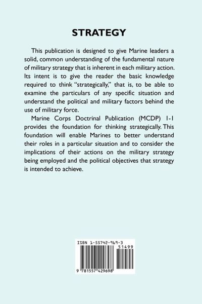 This publication is designed to give Marine leaders a solid, common understanding of the fundamental nature of military strategy that is inherent in each military action. Its intent is to give the reader the basic knowledge required to think "strategically," that is, to be able to examine the particulars of any specific situation and understand the political and military factors behind the use of military force. Marine Corps Doctrinal Publication (MCDP) 1-1 provides the foundation for thinking strategically. This foundation will enable Marines to better understand their roles in a particular situation and to consider the implications of their actions on the military strategy being employed and the political objectives that strategy is intended to achieve.