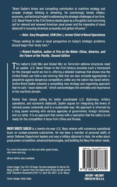 2023 Naval Institute Press Author of the Year Finalist - National Security Book Award This nation‘s Cold War and Global War on Terror defense structures need an update. U.S. Naval Power in the 21st Century provides such a framework for the changed world we live in, offering a detailed roadmap that shows how the United States can field a war-winning fleet that can also compete aggressively in peacetime against dangerous competitors unlike any the nation has faced before. Brent Sadler presents a compelling new strategy and organizing approach that he calls naval statecraft, which acknowledges the centrality and importance of the maritime domain. While similar in scale and scope to Cold War containment strategies against the Soviets, naval statecraft is much more. It must be to challenge China‘s involvement in global supply chains, which gives that country significant financial heft and influence around the world. Unlike what existed during of the Cold War, however, Sadler provides a unique vision for competing with China and Russia. Rather than simply calling for better coordinated U.S. diplomacy, military operations, and economic statecraft, Sadler argues for integrating the levers of national power coherently and in a sustainable way. This is no small feat, and his approach is informed by a long career rich in working with various agencies of government, foreign militaries (including hostile ones), and our allies. It is an approach imminently appropriate to our times but comes with a realization that the nation is not ready for the competition it faces from China and Russia. The book is a valuable contribution to the national debate over how best to respond to China‘s rise and Russia‘s antagonisms.