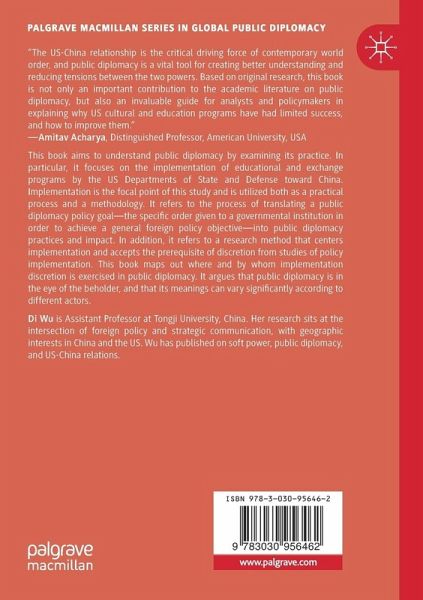 This book aims to understand public diplomacy by examining its practice. In particular, it focuses on the implementation of educational and exchange programs by the US Departments of State and Defense toward China. Implementation is the focal point of this study and is utilized both as a practical process and a methodology. It refers to the process of translating a public diplomacy policy goal-the specific order given to a governmental institution in order to achieve a general foreign policy objective-into public diplomacy practices and impact. In addition, it refers to a research method that centers implementation and accepts the prerequisite of discretion from studies of policy implementation. This book maps out where and by whom implementation discretion is exercised in public diplomacy. It argues that public diplomacy is in the eye of the beholder, and that its meanings can vary significantly according to different actors.