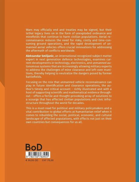 Wars may officially end and treaties may be signed, but their lethal legacy lives on in the form of unexploded ordinance and minefields that continue to harm civilian populations. Aerial reconnaissance reduces the need for risky, costly and time-consuming ground operations, and the rapid development of unmanned aerial vehicles offers crucial innovations for addressing the aftermath of conflicts worldwide. Aleksandar Smiljanic, an international recognized subject matter expert in next generation defence technologies, examines current developments in technology, electronics, and unmanned autonomous systems that are increasingly allowing military experts to address the challenges of mine clearance and left-over munitions, thereby helping to neutralize the dangers posed by former battlefields. Focusing on the role that unmanned vehicle reconnaissance can play in future identification and clearance operations, the author's timely and critical account - richly illustrated and with a host of supporting scientific and mathematical evidence throughout - offers a fertile and thought-provoking array of solutions to a scourge that has affected civilian populations and civic infrastructure throughout the world for decades. This is a must-read for political and military policymakers and a vital contribution to global efforts at humanitarian relief when it comes to rebuilding the social, political, economic, and cultural landscape of affected populations, with effects not just on their own countries but consequences for us all.