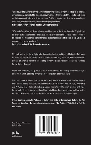 The book is meant to inspire readers to join the growing number of worker-owned "platform cooperatives," rethink unions, and build a better future of work. A call to action, loud and clear, Uberworked and Underpaid shows that it is time to stop wage theft and "crowd fleecing," rethink wealth distribution, and address the urgent question of how digital labor should be regulated and how workers from Berlin, Barcelona, Seattle, and São Paulo can act in solidarity to defend theirrights.