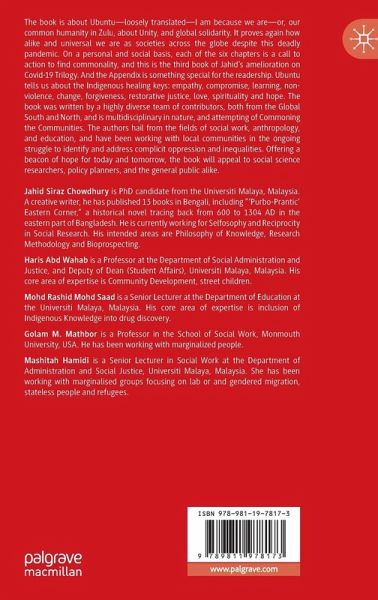 The book is about Ubuntu-loosely translated-I am because we are-or, our common humanity in Zulu, about Unity, and global solidarity. It proves again how alike and universal we are as societies across the globe despite this deadly pandemic. On a personal and social basis, each of the six chapters is a call to action to find commonality, and this is the third book of Jahid's amelioration on Covid-19 Trilogy. And the Appendix is something special for the readership. Ubuntu tells us about the Indigenous healing keys: empathy, compromise, learning, non-violence, change, forgiveness, restorative justice, love, spirituality and hope. The book was written by a highly diverse team of contributors, both from the Global South and North, and is multidisciplinary in nature, and attempting of Commoning the Communities. The authors hail from the fields of social work, anthropology, and education, and have been working with local communities in the ongoing struggle to identify and address complicit oppression and inequalities. Offering a beacon of hope for today and tomorrow, the book will appeal to social science researchers, policy planners, and the general public alike