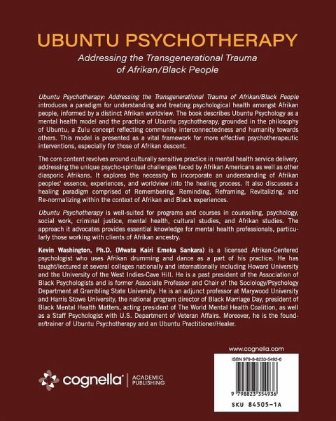 Ubuntu Psychotherapy: Addressing the Transgenerational Trauma of Afrikan/Black People introduces a paradigm for understanding and treating psychological health amongst Afrikan people, informed by a distinct Afrikan worldview. The book describes Ubuntu Psychology as a mental health model and the practice of Ubuntu psychotherapy, grounded in the philosophy of Ubuntu, a Zulu concept reflecting community interconnectedness and humanity towards others. This model is presented as a vital framework for more effective psychotherapeutic interventions, especially for those of Afrikan descent. The core content revolves around culturally sensitive practice in mental health service delivery, addressing the unique psycho-spiritual challenges faced by Afrikan Americans as well as other diasporic Afrikans. It explores the necessity to incorporate an understanding of Afrikan peoples' essence, experiences, and worldview into the healing process. It also discusses a healing paradigm comprised of Remembering, Reminding, Reframing, Revitalizing, and Re-normalizing within the context of Afrikan and Black experiences. Ubuntu Psychotherapy is well-suited for programs and courses in counseling, psychology, social work, criminal justice, mental health, cultural studies, and Afrikan studies. The approach it advocates provides essential knowledge for mental health professionals, particularly those working with clients of Afrikan ancestry.