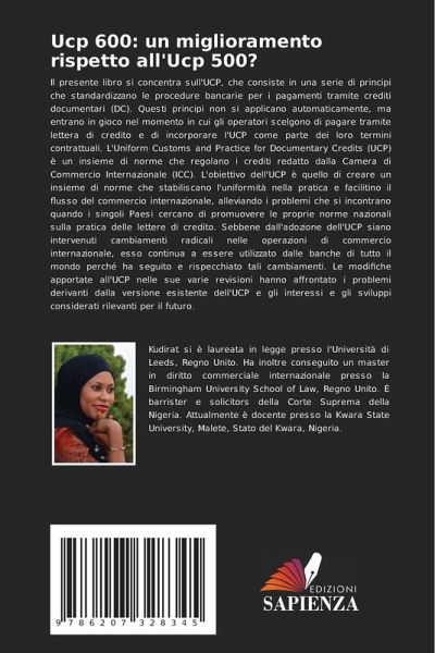 Il presente libro si concentra sull'UCP, che consiste in una serie di principi che standardizzano le procedure bancarie per i pagamenti tramite crediti documentari (DC). Questi principi non si applicano automaticamente, ma entrano in gioco nel momento in cui gli operatori scelgono di pagare tramite lettera di credito e di incorporare l'UCP come parte dei loro termini contrattuali. L'Uniform Customs and Practice for Documentary Credits (UCP) è un insieme di norme che regolano i crediti redatto dalla Camera di Commercio Internazionale (ICC). L'obiettivo dell'UCP è quello di creare un insieme di norme che stabiliscano l'uniformità nella pratica e facilitino il flusso del commercio internazionale, alleviando i problemi che si incontrano quando i singoli Paesi cercano di promuovere le proprie norme nazionali sulla pratica delle lettere di credito. Sebbene dall'adozione dell'UCP siano intervenuti cambiamenti radicali nelle operazioni di commercio internazionale, esso continua a essere utilizzato dalle banche di tutto il mondo perché ha seguito e rispecchiato tali cambiamenti. Le modifiche apportate all'UCP nelle sue varie revisioni hanno affrontato i problemi derivanti dalla versione esistente dell'UCP e gli interessi e gli sviluppi considerati rilevanti per il futuro.