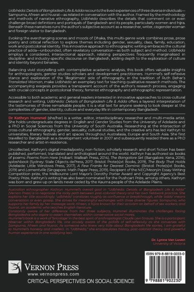 'Udbh¿da: Details of Bangladesh Life & Adda' recounts the lived experiences of three diverse individuals-Sampurna, Afreen and Nusrat-as related in conversation with the author. Framed by the methodology and methods of narrative ethnography, 'Udbh¿da' describes the details that comment on or even challenge broad definitions and portrayals of Bangladesh and its people, particularly women and hijra. Beneath these narratives runs the author's subjective account as a researcher, writer, cisgender woman and foreign visitor to Bangladesh. Evoking the everchanging scenes and moods of Dhaka, this multi-genre work combines prose, prose poetry and critical reflection to explore themes including gender, sexuality, class, family, education, work and postcolonial identity. This innovative approach to ethnographic writing embraces the cultural practice of adda-unbounded, often revelatory conversation-as both subject and method. 'Udbh¿da' employs a considered, intersectional approach, relating perspectives frequently marginalised in discipline- and industry-specific discourse on Bangladesh, adding depth to the exploration of culture and identity beyond binaries. Balancing vivid storytelling with contemplative academic analysis, this book offers valuable insights for anthropologists, gender studies scholars and development practitioners. Hummel's self-reflexive stance and exploration of the 'illegitimate' side of ethnography, in the tradition of Ruth Behar's 'Translated Woman', make 'Udbh¿da' an exemplary text for teaching qualitative research methods. The accompanying exegesis provides a transparent account of the author's research process, engaging with crucial concepts in postcolonial theory, feminist ethnography and ethnographic representation. Accessible to both academic and general readers interested in innovative approaches to cross-cultural research and writing, 'Udbh¿da: Details of Bangladesh Life & Adda' offers a layered interpretation of the testimonies of three remarkable people. It is a vital text for anyone seeking to look deeper at the complexities of gender, identity, culture and everyday life in contemporary Bangladesh.