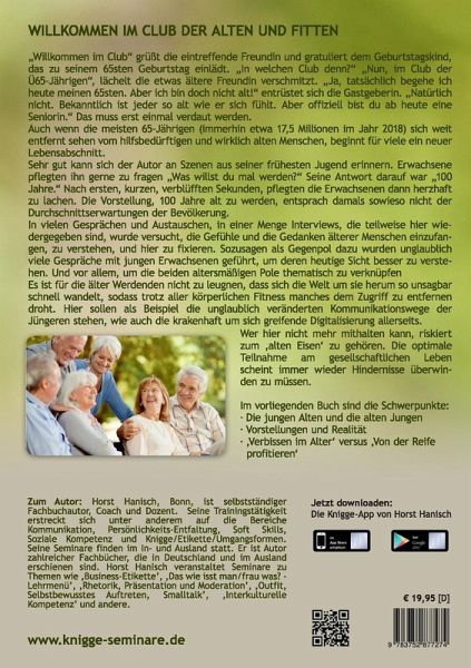 "Willkommen im Club" grüßt die eintreffende Freundin und gratuliert dem Geburtstagskind, das zu seinem 65sten Geburtstag einlädt. "In welchen Club denn?" "Nun, im Club der Ü65-Jährigen", lächelt die etwas ältere Freundin verschmitzt. "Ja, tatsächlich begehe ich heute meinen 65sten. Aber ich bin doch nicht alt!" entrüstet sich die Gastgeberin. "Natürlich nicht. Bekanntlich ist jeder so alt wie er sich fühlt. Aber offiziell bist du ab heute eine Seniorin." Das muss erst einmal verdaut werden.Auch wenn die meisten 65-Jährigen (immerhin etwa 17,5 Millionen im Jahr 2018) sich weit entfernt sehen vom hilfsbedürftigen und wirklich alten Menschen, beginnt für viele ein neuer Lebensabschnitt. Sehr gut kann sich der Autor an Szenen aus seiner frühesten Jugend erinnern. Erwachsene pflegten ihn gerne zu fragen "Was willst du mal werden?" Seine Antwort darauf war "100 Jahre." Nach ersten, kurzen, verblüfften Sekunden, pflegten die Erwachsenen dann herzhaft zu lachen. Die Vorstellung, 100 Jahre alt zu werden, entsprach damals sowieso nicht der Durchschnittserwartungen der Bevölkerung.In vielen Gesprächen und Austauschen, in einer Menge Interviews, die teilweise hier wiedergegeben sind, wurde versucht, die Gefühle und die Gedanken älterer Menschen einzufangen, zu verstehen, und hier zu fixieren. Sozusagen als Gegenpol dazu wurden unglaublich viele Gespräche mit jungen Erwachsenen geführt, um deren heutige Sicht besser zu verstehen. Und vor allem, um die beiden altersmäßigen Pole thematisch zu verknüpfen.Es ist für die älter Werdenden nicht zu leugnen, dass sich die Welt um sie herum so unsagbar schnell wandelt, sodass trotz aller körperlichen Fitness manches dem Zugriff zu entfernen droht. Hier sollen als Beispiel die unglaublich veränderten Kommunikationswege der Jüngeren stehen, wie auch die krakenhaft um sich greifende Digitalisierung allerseits.Wer hier nicht mehr mithalten kann, riskiert zum 'alten Eisen' zu gehören. Die optimale Teilnahme am gesellschaftlichen Leben scheint immer wieder Hindernisse überwinden zu müssen.Im vorliegenden Buch sind die Schwerpunkte:- Die jungen Alten und die alten Jungen- Vorstellungen und Realität- 'Verbissen im Alter' versus 'Von der Reife profitieren'