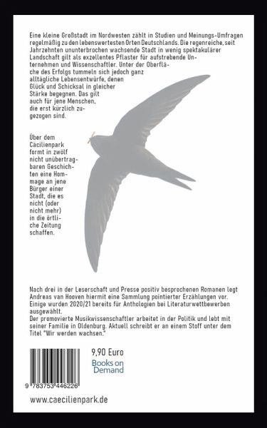 ,,Über dem Cäcilienpark“   entführt der Andreas van Hooven den Leser in 12 Erzählungen in eine Welt von Protagonisten, die es überall geben könnte.