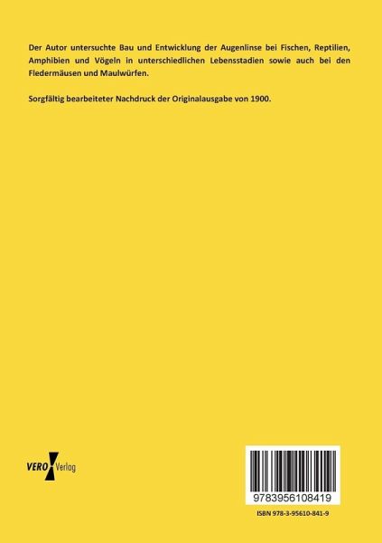 Der Autor untersuchte Bau und Entwicklung der Augenlinse bei Fischen, Reptilien, Amphibien und Vögeln in unterschiedlichen Lebensstadien sowie auch bei den Fledermäusen und Maulwürfen. Sorgfältig bearbeiteter Nachdruck der Originalausgabe von 1900.