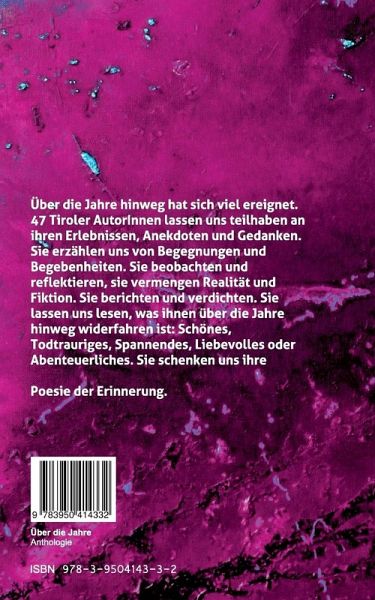 Über die Jahre hinweg hat sich viel ereignet. 47 Tiroler AutorInnen lassen uns teilhaben an ihren Erlebnissen, Anekdoten und Gedanken. Sie erzählen uns von Begegnungen und Begebenheiten. Sie beobachten und reflektieren, sie vermengen Realität und Fiktion. Sie berichten und verdichten. Sie lassen uns lesen, was ihnen über die Jahre hinweg widerfahren ist: Schönes, Todtrauriges, Spannendes, Liebevolles oder Abenteuerliches. Sie schenken uns ihre Poesie der Erinnerung.