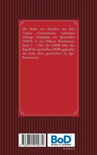 Die Reihe von Schriften aus dem Cosmic Consciousness beleuchtet wichtige Teilaspekte des Spirituellen WEGS in ein Höheres Bewusstsein. Band 1 - Über die LIEBE klärt den Begriff der spirituellen LIEBE gegenüber der Liebe, klein geschrieben, im Ego-Bewusstsein.