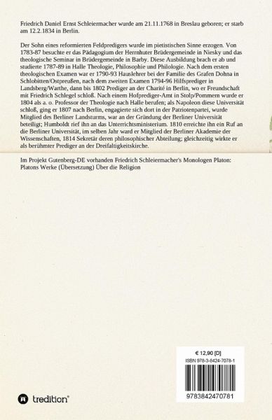 Friedrich D. E. Schleiermacher (1768-1834) wirkte als Theologe, Philosoph und Geistlicher vor allem in Halle und Berlin.