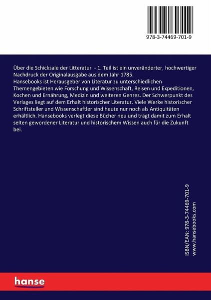 Über die Schicksale der Litteratur - 1. Teil ist ein unveränderter, hochwertiger Nachdruck der Originalausgabe aus dem Jahr 1785.