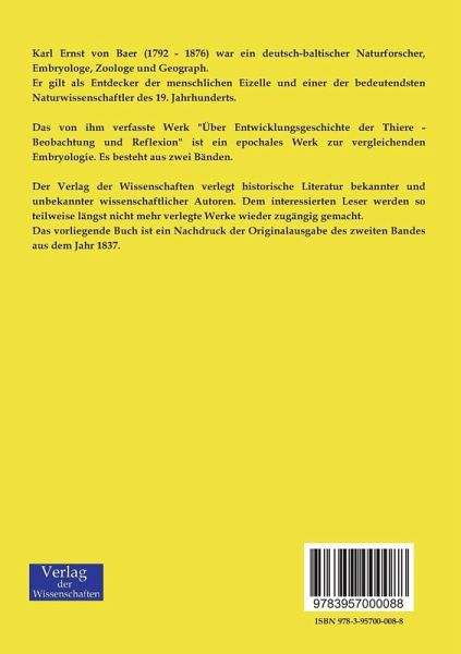 Das von ihm verfasste Werk "Über Entwicklungsgeschichte der Thiere - Beobachtung und Reflexion" ist ein epochales Werk zur vergleichenden Embryologie. Es besteht aus zwei Bänden.