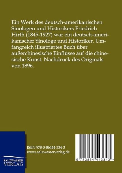 Ein Werk des deutsch-amerikanischen Sinologen und Historikers Friedrich Hirth (1845-1927) war ein deutsch-amerikanischer Sinologe und Historiker. Umfangreich illustriertes Buch über außerchinesische Einflüsse auf die chinesische Kunst. Nachdruck des Originals von 1896.