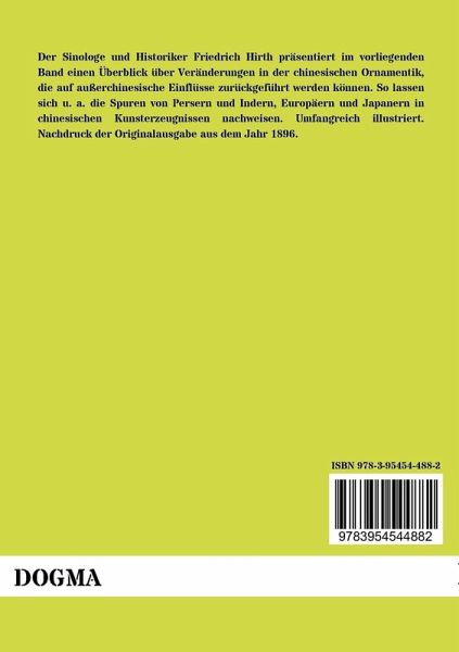 Der Sinologe und Historiker Friedrich Hirth präsentiert im vorliegenden Band einen Überblick über Veränderungen in der chinesischen Ornamentik, die auf außerchinesische Einflüsse zurückgeführt werden können. So lassen sich u. a. die Spuren von Persern und Indern, Europäern und Japanern in chinesischen Kunsterzeugnissen nachweisen. Umfangreich illustriert. Nachdruck der Originalausgabe aus dem Jahr 1896.