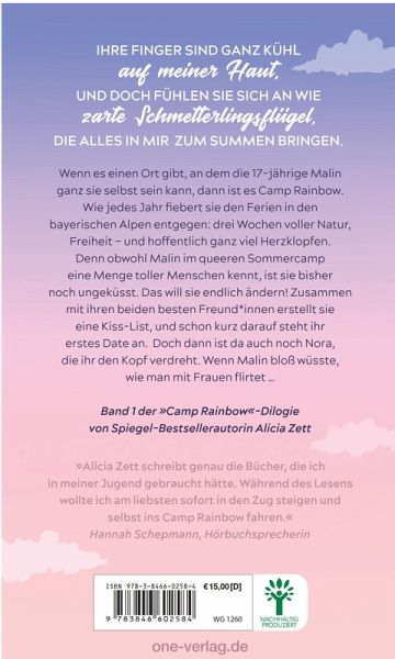 Malin ist 17 Jahre alt und ihr allerliebster Ort, ist das Camp Rainbow, in den bayerischen Alpen, welches jedes Jahr in den Ferien stattfindet. In diesen drei Wochen gibt es unglaublich viele AGs, sie sieht ihre besten Freunde wieder und hat einfach eine