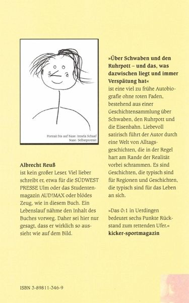 "Über Schwaben und den Ruhrpott - und das, was dazwischen liegt und immer Verspätung hat" ist eine viel zu frühe Autobiografie ohne roten Faden, bestehend aus einer Geschichtensammlung über Schwaben, den Ruhrpott und die Eisenbahn. Liebevoll satirisch führt der Autor durch eine Welt von Alltagsgeschichten, die in der Regel hart am Rande der Realität vorbei schrammen. Es sind Geschichten, die typisch sind für Regionen, und Geschichten, die typisch sind für das Leben an sich.