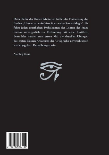 Diese Reihe der Runen-Mysterien bildet die Fortsetzung des Buches "Hermetische Aufsätze über wahre Runen-Magie". Sie führt jeden ernsthaften Praktikanten der Lehren des Franz Bardon unweigerlich zur Verbindung mit seiner Gottheit, denn hier werden zum ersten Mal die rituellen Übungen des ersten kleinen Arkanums der Ur-Sprache unverschlüsselt wiedergegeben. Deshalb sagen wir:Alaf Sig RunaVorwort1. Gertrudenberger Höhlen in Osnabrück2. Heilige Bäume3. Das Julfest4. Die Lautmagie der jüdische Quabbalah5. Papus - Der Gedanke6. Ein Aufsatz - Über Runen und Hakenkreuze7. Liste der Runenbücher8. I-E-O-U-A9. Der Lebensbaum - der Weihnachtsbaum - der Lichterbaum = Yggdrasil10. Vril, die Runen der Planeten11. Die Links- und Rechtsdrehung des Hakenkreuzes12. Sprüche, schön und wunderbar13. Die Herkunft der Runenschrift14. Von Loki übermittelt.