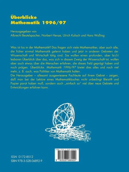Was ist los in der Mathematik? Das fragen sich viele Mathematiker, aber auch alle, die früher einmal Mathematik gelernt haben und jetzt in anderen Feldern der Wissenschaft und Wirtschaft tätig sind. Sie wollen einen profunden, aber leicht lesbaren Überblick über das, was sich in diesem Zweig der Wissenschaft tut, wollen aber auch etwas über Menschen erfahren, die dieses Feld prägen. "Überblicke Mahematik" bietet dies alles und noch viel mehr, z. B. auch, was Politiker von Mathematik halten. Die Herausgeber - allesamt ausgewiesene Fachleute auf ihrem Gebiet - zeigen, daß man bei der Lektüre eines Mathematikbuches nicht verzweifeln muß, sondern auch "einfach so" viel über neue Gebiete und Entwicklungen erfahren kann.