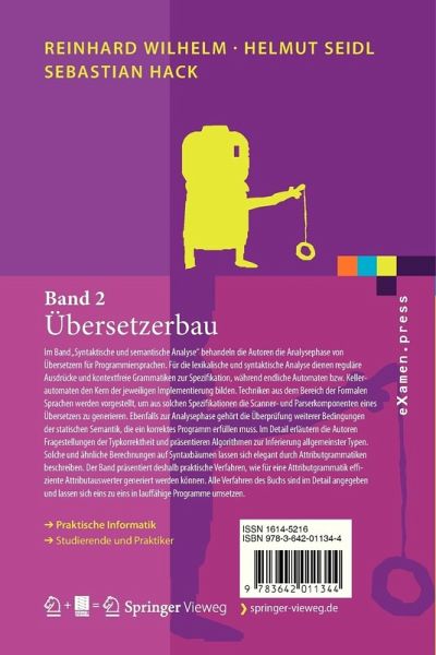 Das Buch behandelt die Analysephase von Übersetzern für Programmiersprachen. Es beschreibt die lexikalische, die syntaktische und die semantische Analyse, Spezifikationsmechanismen für diese Aufgaben aus der Theorie der formalen Sprachen und automatische Erzeugungsverfahren aus der Theorie der Automaten. Vorgestellt wird eine konzeptionelle Übersetzerstruktur, also eine Aufteilung in eine Menge von Moduln, welche ein Eingabeprogramm in einer Folge von Schritten in ein Maschinenprogramm transformieren, und beschreibt die Schnittstellen zwischen den Moduln. Schließlich werden auch die Strukturen von realen Übersetzern skizziert. Das Buch enthält die notwendige Theorie und Hinweise zur Implementierung.