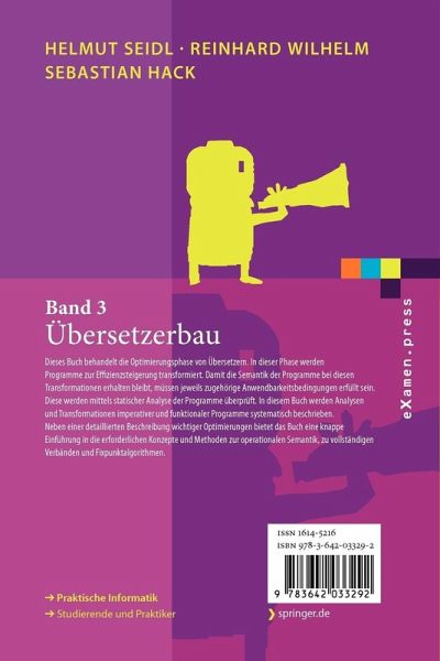 Dieses Buch behandelt die Optimierungsphase von Übersetzern. In dieser Phase werden Programme zur Effizienzsteigerung transformiert. Damit die Semantik der Programme bei diesen Transformationen erhalten bleibt, müssen jeweils zugehörige Anwendbarkeitsbedingungen erfüllt sein. Diese werden mittels statischer Analyse der Programme überprüft. In diesem Buch werden Analysen und Transformationen imperativer und funktionaler Programme systematisch beschrieben. Neben einer detaillierten Beschreibung wichtiger Optimierungen bietet das Buch eine knappe Einführung in die erforderlichen Konzepte und Methoden zur operationalen Semantik, zu vollständigen Verbänden und Fixpunktalgorithmen.