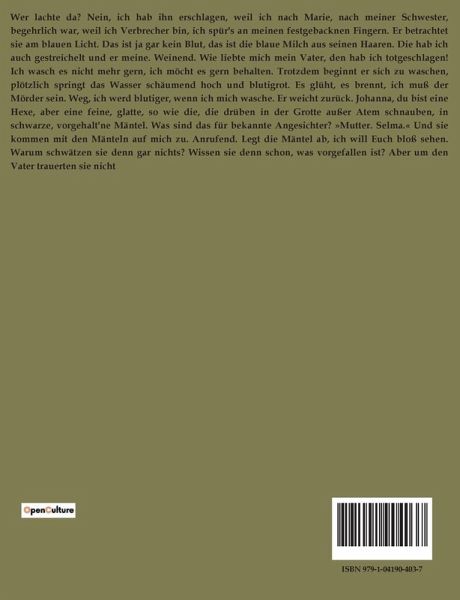 Wer lachte da? Nein, ich hab ihn erschlagen, weil ich nach Marie, nach meiner Schwester, begehrlich war, weil ich Verbrecher bin, ich spür's an meinen festgebacknen Fingern. Er betrachtet sie am blauen Licht. Das ist ja gar kein Blut, das ist die blaue Milch aus seinen Haaren. Die hab ich auch gestreichelt und er meine. Weinend. Wie liebte mich mein Vater, den hab ich totgeschlagen! Ich wasch es nicht mehr gern, ich möcht es gern behalten. Trotzdem beginnt er sich zu waschen, plötzlich springt das Wasser schäumend hoch und blutigrot. Es glüht, es brennt, ich muß der Mörder sein. Weg, ich werd blutiger, wenn ich mich wasche. Er weicht zurück. Johanna, du bist eine Hexe, aber eine feine, glatte, so wie die, die drüben in der Grotte außer Atem schnauben, in schwarze, vorgehalt'ne Mäntel. Was sind das für bekannte Angesichter? »Mutter. Selma.« Und sie kommen mit den Mänteln auf mich zu. Anrufend. Legt die Mäntel ab, ich will Euch bloß sehen. Warum schwätzen sie denn gar nichts? Wissen sie denn schon, was vorgefallen ist? Aber um den Vater trauerten sie nicht