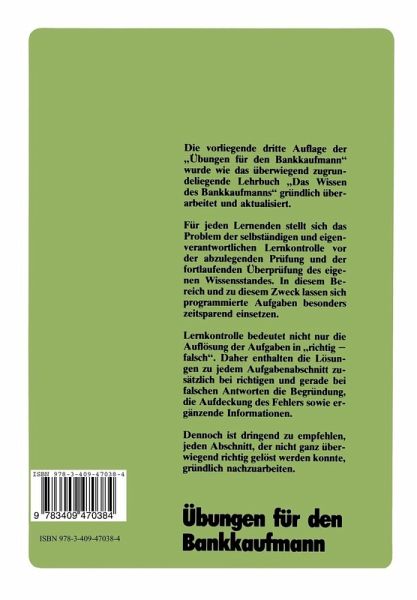 1. Wirtschaftslehre.- 1.1 Wirtschaftliche Grundbegriffe.- 1.2 Rechtliche Grundbegriffe.- 1.3 Rechtsgeschäftliche Grundbegriffe.- 1.4 Der Kaufvertrag.- 1.5 Durchsetzung von Ansprüchen.- 1.6 Kaufmännischer Dienstleistungsverkehr.- 1.7 Grundstücksverkehr.- 1.8 Unternehmungen - Grundbegriffe.- 1.9 Unternehmensformen.- 1.10 Unternehmungen - Zusammenschlüsse, Notleiden, Finanzierung.- 1.11 Arbeits-und Sozialrecht, Steuern.- 2. Bankbetriebslehre.- 2.1 Grundlagen.- 2.2 Bar-und Überweisungsverkehr.- 2.3 Scheck- und Wechsel-, sonstiger Zahlungsverkehr.- 2.4 Passivgeschäft.- 2.5 Aktivgeschäft - Grundlagen; Sicherheiten.- 2.6 Kurz-und mittelfristiges Kreditgeschäft.- 2.7 Langfristiges Kreditgeschäft.- 2.8 Grundbegriffe des Wertpapiergeschäftes.- 2.9 Emissions- und Börsengeschäft.- 2.10 Effektenhandel und Depotgeschäft der Kreditinstitute.- 3. Außenhandel und Auslandsgeschäfte der Kreditinstitute.- 3.1 Außenhandel.- 3.2 Auslandsgeschäfte der Kreditinstitute.- 4. Rechnungswesen in Kreditinstituten.- 5. Geld, Wirtschaft, Währung.- 6. Politisches Grundwissen.