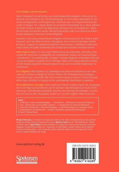 Dieses Arbeitsbuch stellt eine gute Ergänzung zum Lehrbuch "Allgemeine und Anorganische Chemie" von M. Binnewies dar. (...) Die ca. 160 Aufgaben (ausführliche Lösungen jeweils am Ende der Kapitel) eignen sich sehr gut für die Vorbereitung auf Klausuren und Prüfungen. (...) Sehr gutes Preis-Leistungs-Verhältnis!