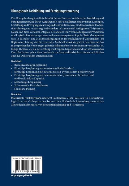 Das Aufgabenbuch ergänzt die in Lehrbüchern erläuterten Verfahren der Losbildung und Fertigungssteuerung durch sehr detaillierte und präzise Lösungen. Losbildung und Fertigungssteuerung sind zentrale Kernelemente der operativen Produktionsplanung und -steuerung, insbesondere in kommerziell verfügbaren IT-Systemen. Daher sind diese Verfahren integrale Bestandteile von Veranstaltungen zur Produktion und Logistik, Produktionsplanung und -steuerungsysteme, Supply Chain Management usw. in Bachelor- und Masterstudiengängen an Hochschulen und Universitäten. Zu Beginn einer Lösung wird die verwendete Methodik soweit dargestellt, dass diese mit den in entsprechenden Vorlesungen gelehrten Inhalten ohne weitere Literatur verständlich ist. Einige Themen, wie die Betrachtung von knappen Kapazitäten und von schwankenden Durchlaufzeiten, gehen über den Inhalt von Standardlehrbüchern hinaus und dürften auch für Doktoranden interessant sein.