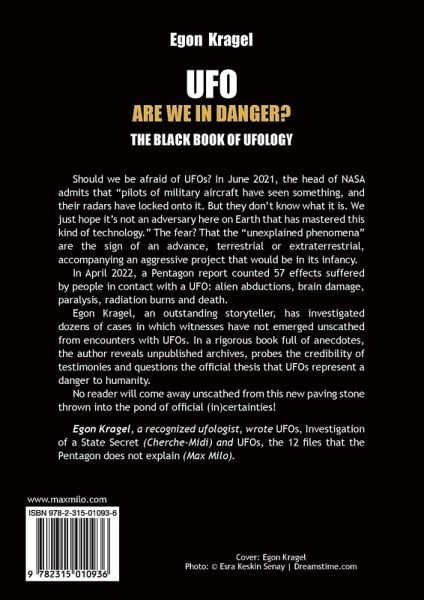 Should we be afraid of UFOs? In June 2021, the head of NASA admits that "pilots of military aircraft have seen something, and their radars have locked onto it. But they don't know what it is. We just hope it's not an adversary here on Earth that has mastered this kind of technology." The fear? That the "unexplained phenomena" are the sign of an advance, terrestrial or extraterrestrial, accompanying an aggressive project that would be in its infancy. In April 2022, a Pentagon report counted 57 effects suffered by people in contact with a UFO: alien abductions, brain damage, paralysis, radiation burns and death.Egon Kragel, an outstanding storyteller, has investigated dozens of cases in which witnesses have not emerged unscathed from encounters with UFOs. In a rigorous book full of anecdotes, the author reveals unpublished archives, probes the credibility of testimonies and questions the official thesis that UFOs represent a danger to humanity.No reader will come away unscathed from this new paving stone thrown into the pond of official (in)certainties!