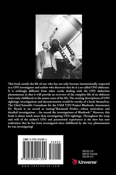 This book entails the life of one who has not only become internationally respected as a UFO investigator and author but now as a so-called UFO abductee. It is strikingly different from other works dealing with UFO abductions in that it will provide an overview of the complete life of an abductee from early childhood to sunset years of his life. The exciting descriptions of UFO sightings, investigations and documentation would be worthy of a book themselves. The Chief Scientific Consultant for the USAF UFO Project Bluebook, Astronomer Dr. Hynek is on record as stating: