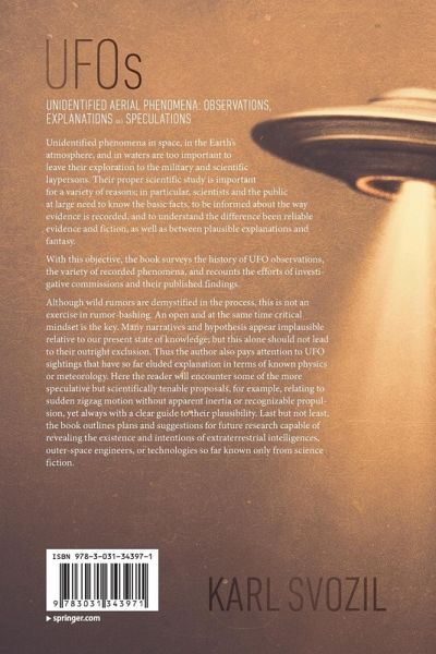 Although wild rumors are demystified in the process, this is not an exercise in rumor-bashing. An open and at the same time critical mindset is the key. Many narratives and hypothesis appear implausible relative to our present state of knowledge; but this alone should not lead to their outright exclusion. Thus the author also pays attention to UFO sightings that have so far eluded explanation in terms of known physics or meteorology. Here the reader will encounter some of the more speculative but scientifically tenable proposals, for example, relating to sudden zigzag motion without apparent inertia or recognizable propulsion, yet always with a clear guide to their plausibility. Last but not least, the book outlines plans and suggestions for future research capable of revealing the existence and intentions of extraterrestrial intelligences, outer-space engineers, or technologies so far known only from science fiction.