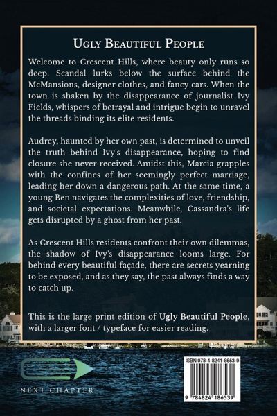 Welcome to Crescent Hills, where beauty only runs so deep. Scandal lurks below the surface behind the McMansions, designer clothes, and fancy cars. When the town is shaken by the disappearance of journalist Ivy Fields, whispers of betrayal and intrigue begin to unravel the threads binding its elite residents. Audrey, haunted by her own past, is determined to unveil the truth behind Ivy's disappearance, hoping to find closure she never received. Amidst this, Marcia grapples with the confines of her seemingly perfect marriage, leading her down a dangerous path. At the same time, a young Ben navigates the complexities of love, friendship, and societal expectations. Meanwhile, Cassandra's life gets disrupted by a ghost from her past. As Crescent Hills residents confront their own dilemmas, the shadow of Ivy's disappearance looms large. For behind every beautiful façade, there are secrets yearning to be exposed, and as they say, the past always finds a way to catch up. This is the large print edition of Ugly Beautiful People, with a larger font / typeface for easier reading.